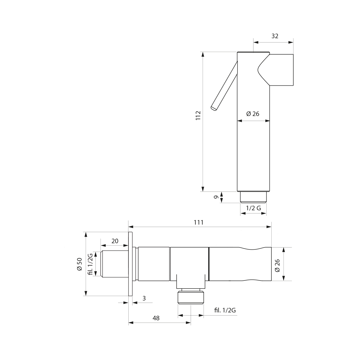 Nástěnný ventil s ruční bidetovou sprškou a bezpečnostní pojistkou,hranatý,chrom SG108