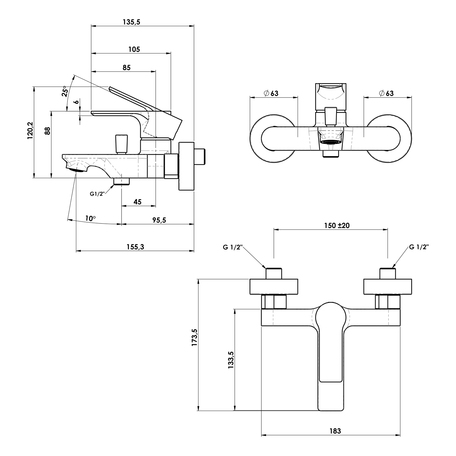 KAI nástěnná vanová baterie, černá mat KA10/15