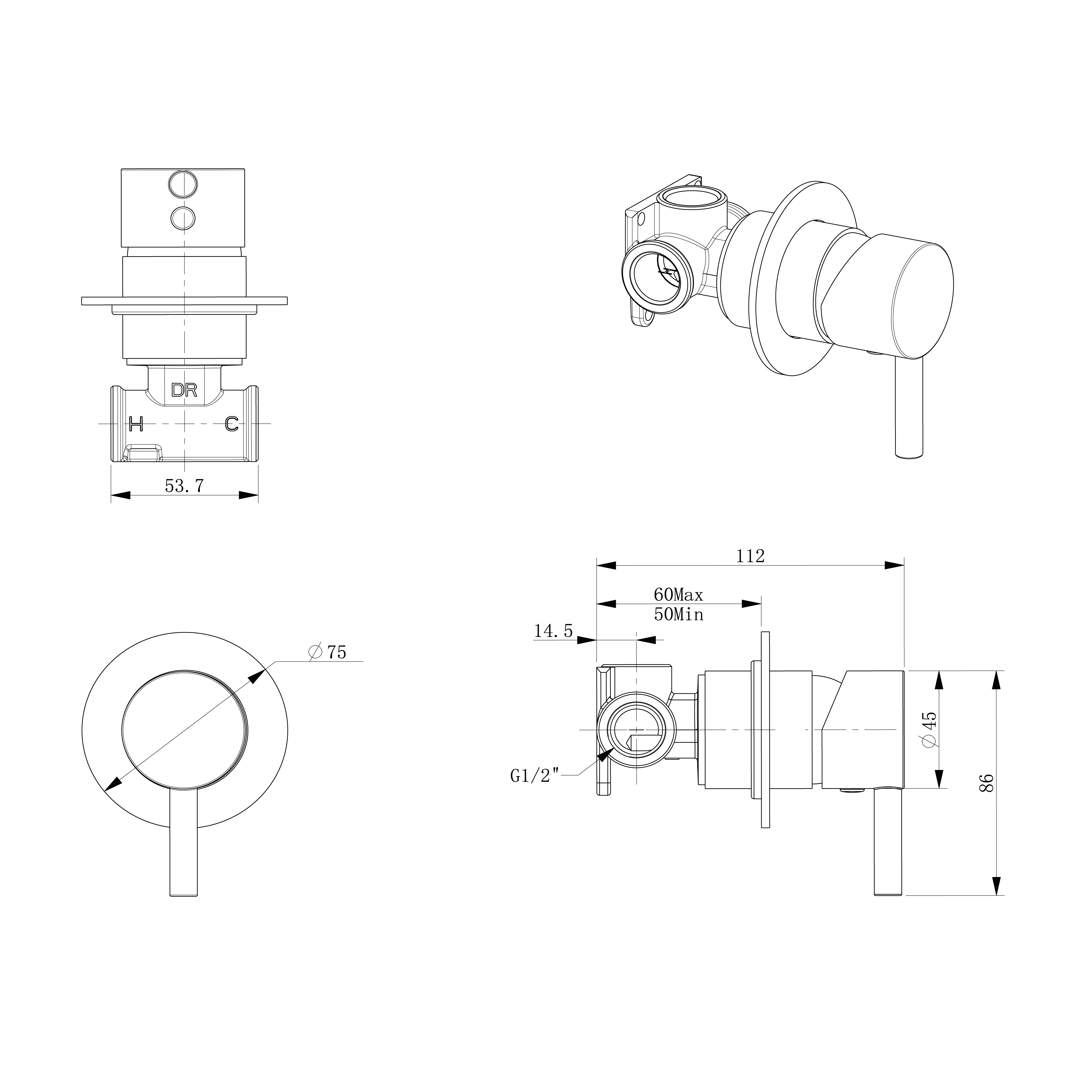 Držák sprchy kulatý, pevný, s vyústěním, chrom SG203
