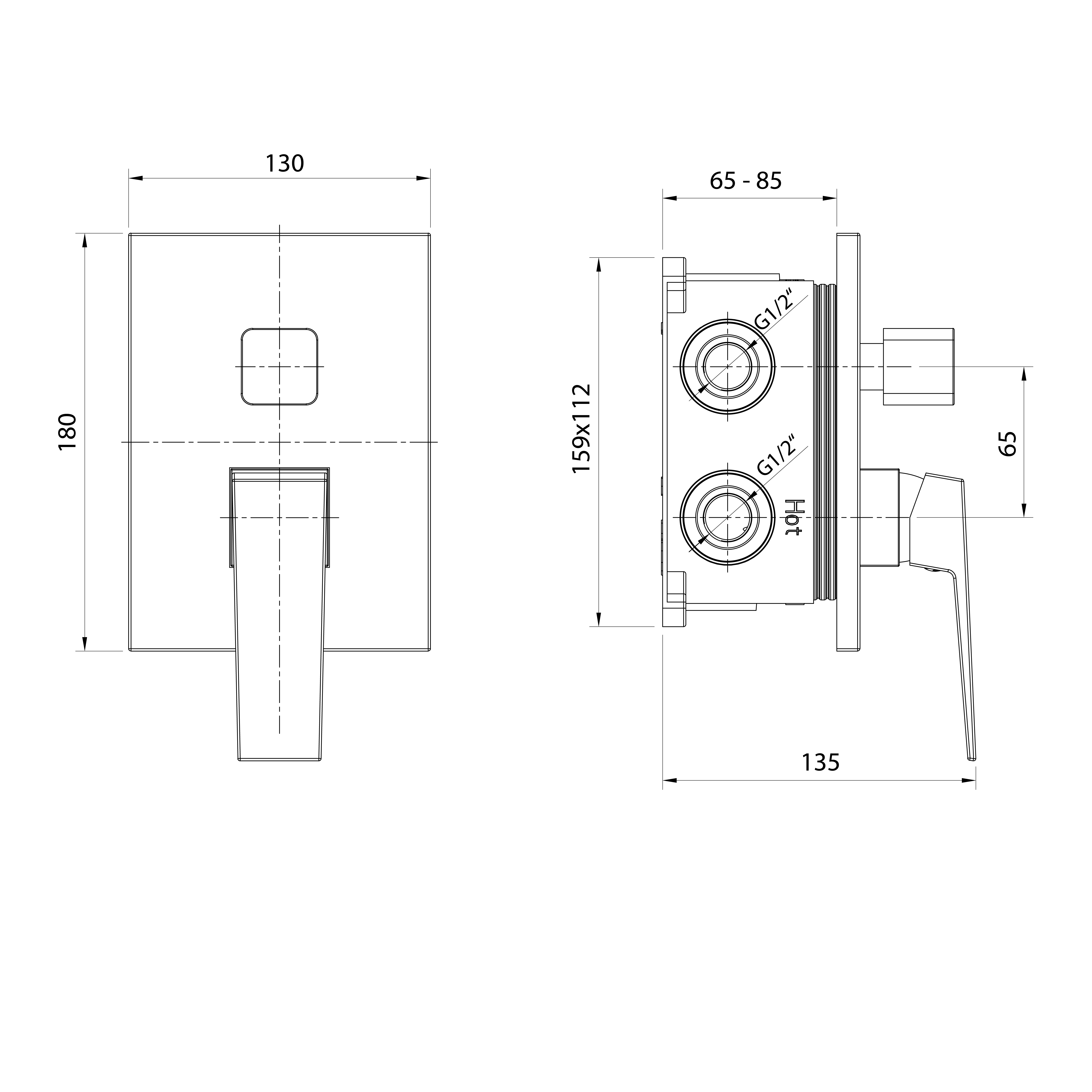 RITMO podomítková sprchová baterie, box, 2 výstupy, chrom RT042