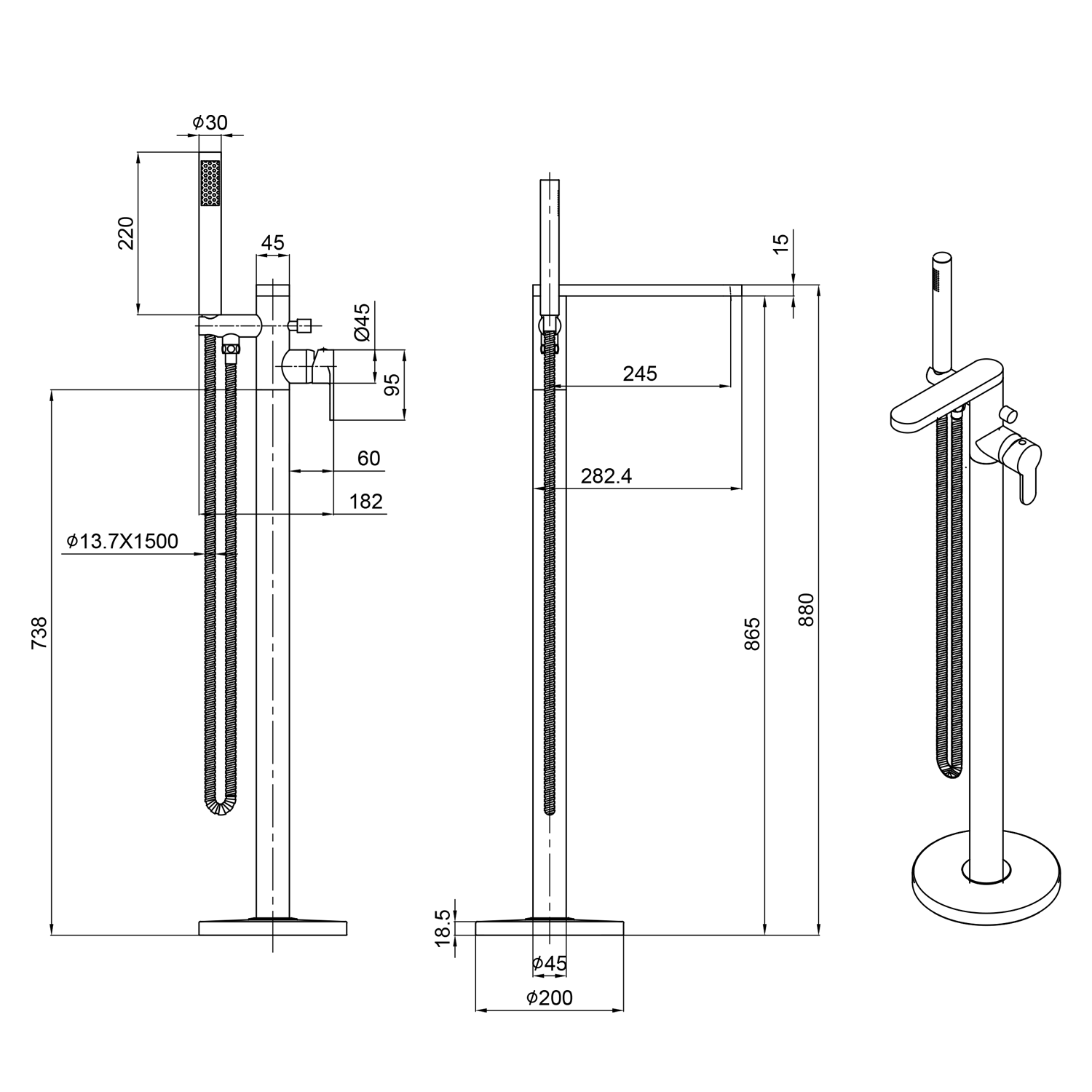 BEBÉ vanová baterie s připojením do podlahy, chrom BB021