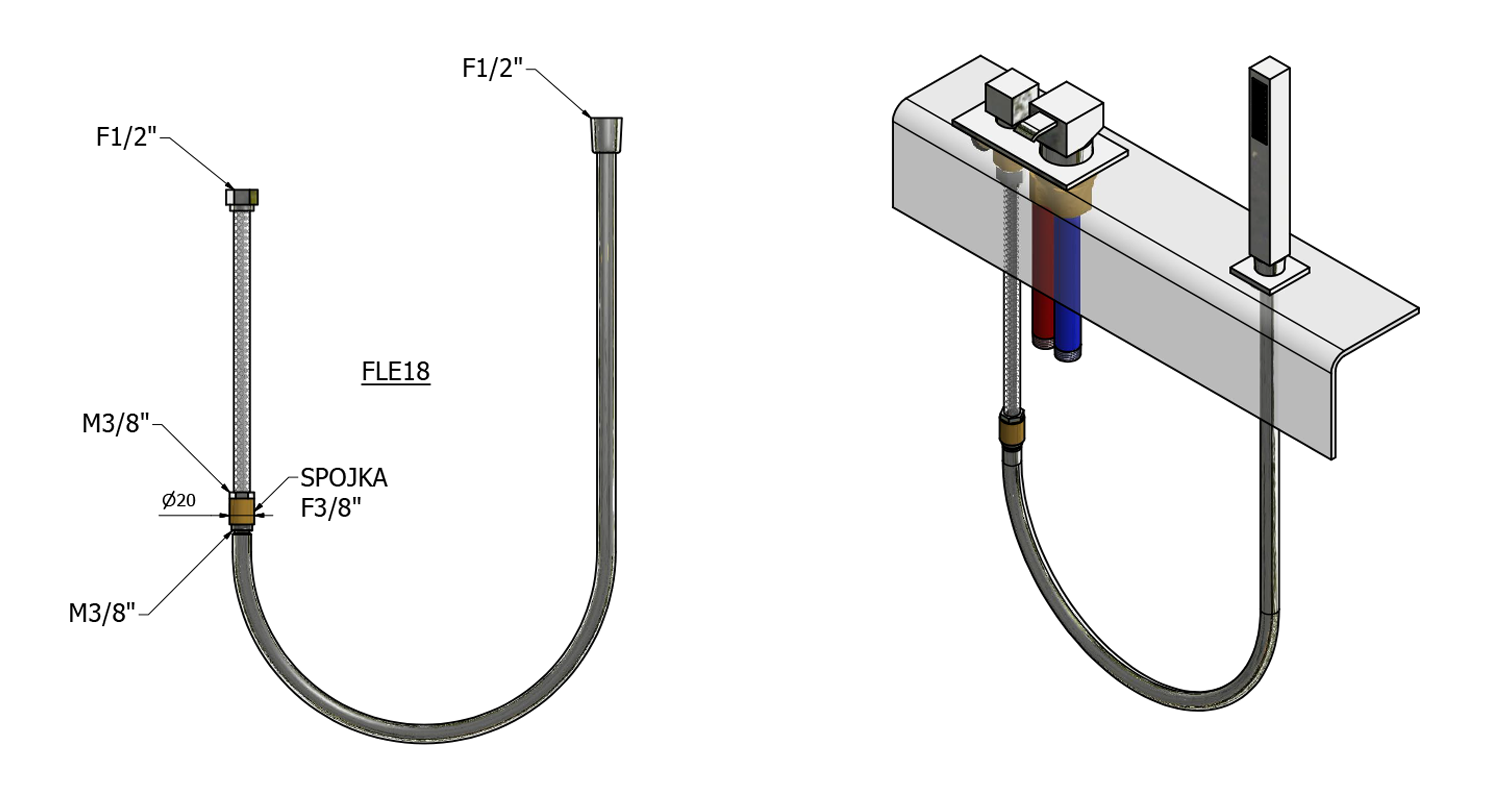 Sprchové kolínko mezi hlavici a hadici 1/2