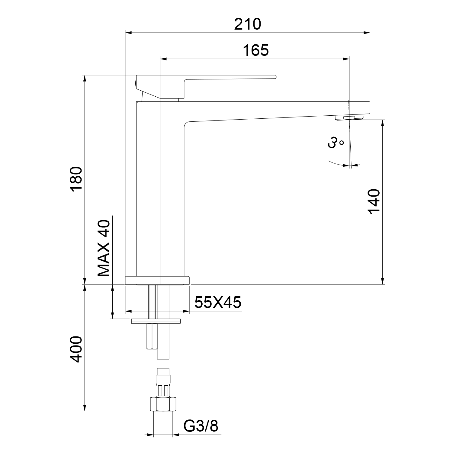 Umyvadlová výpust 5/4“, click-clack, velká zátka, 10-55mm, černá mat CV1002B