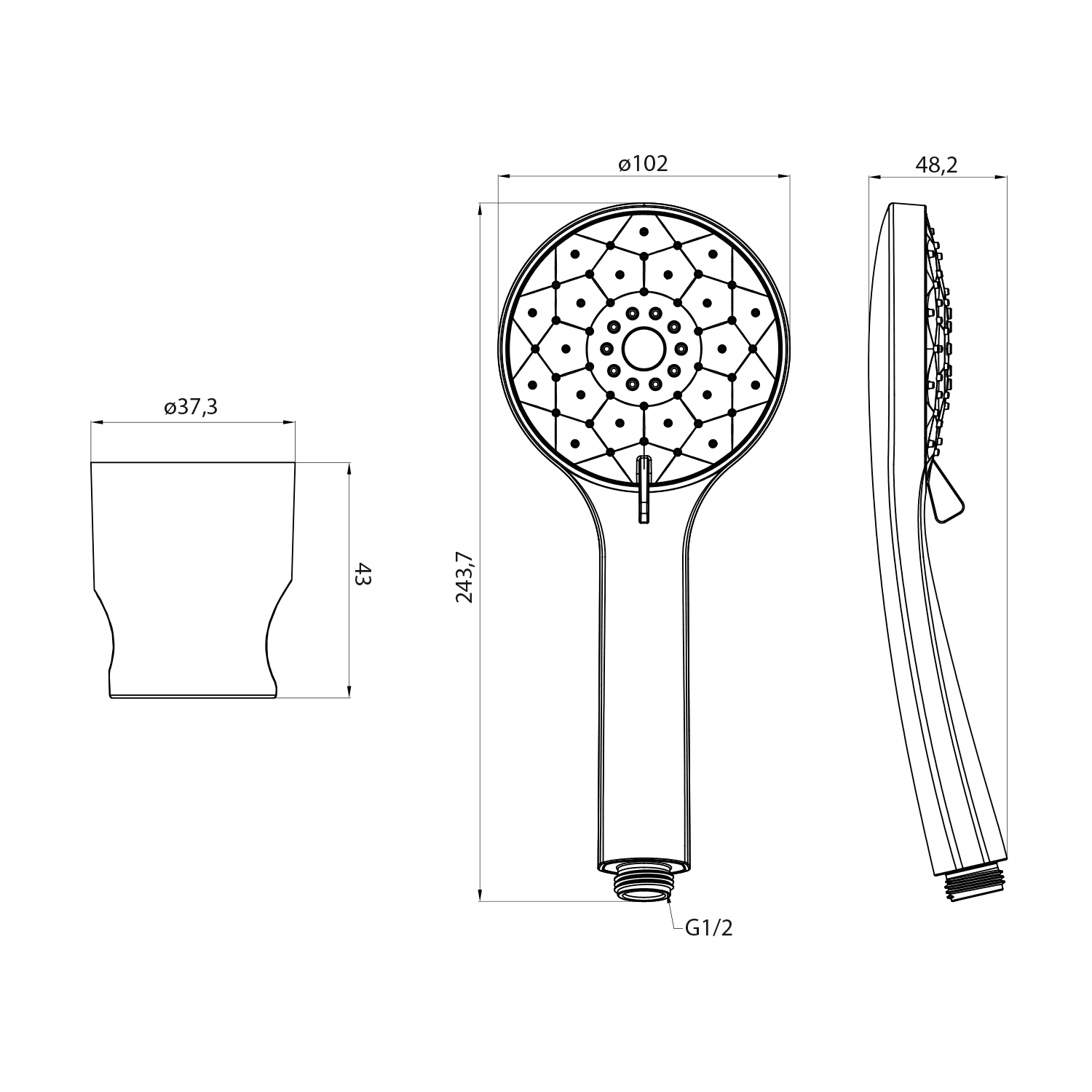 Sprchová souprava, 3 režimy sprchování, silikon trysky, pevný držák, hadice 1500mm, černá mat 1204-62B