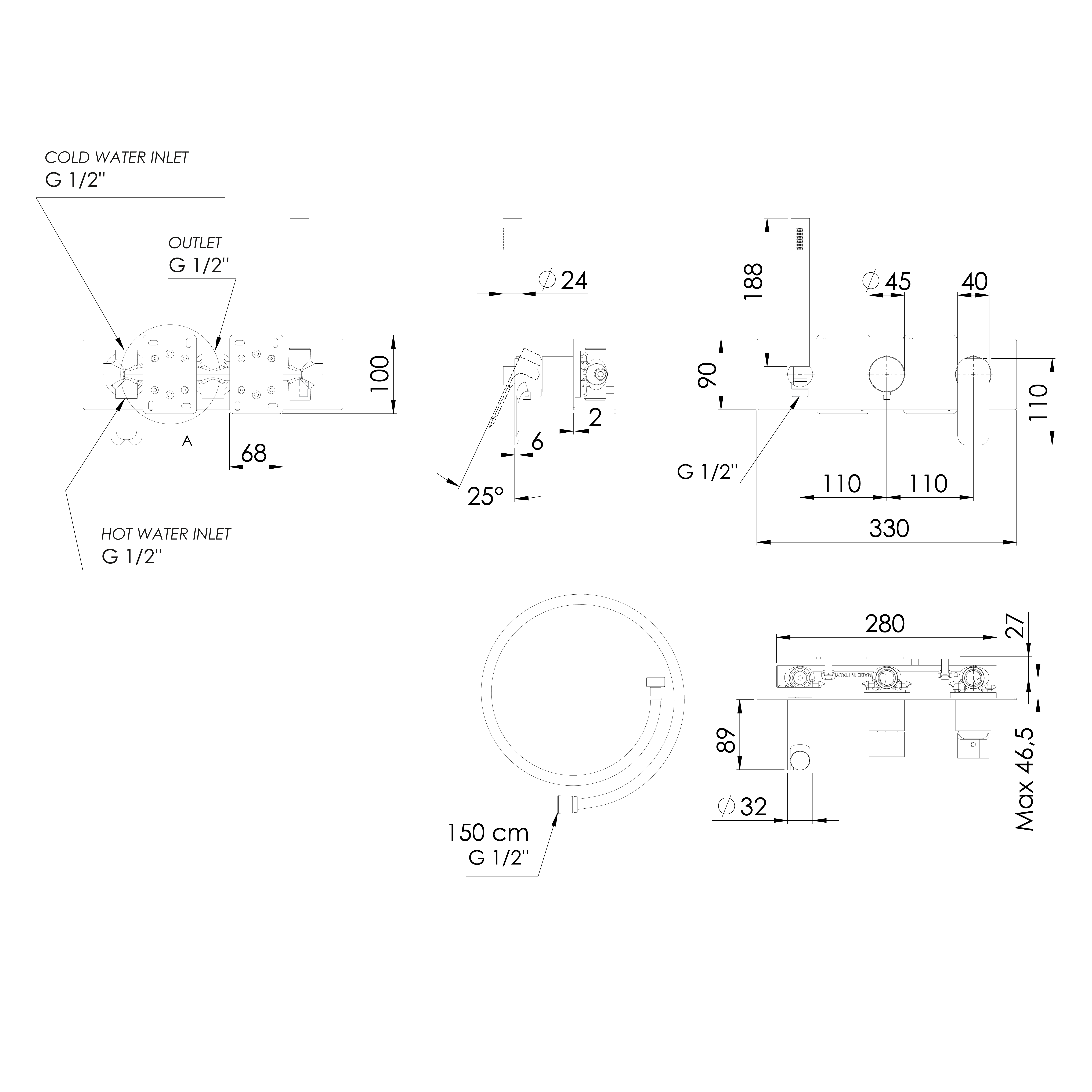 DIMY podomítková sprchová baterie s ruční sprchou, 2 výstupy, černá mat DM142BL