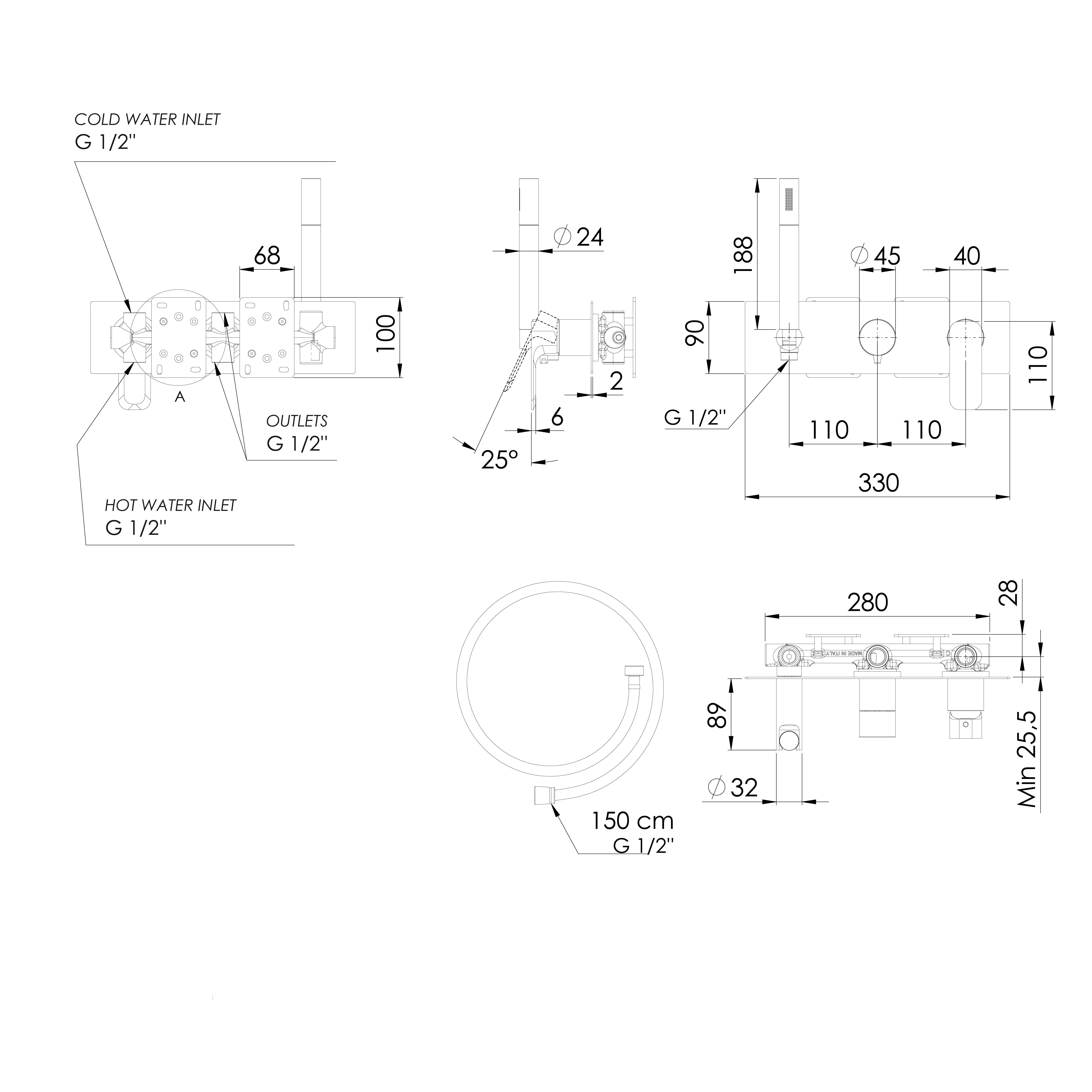 PAX podomítková sprchová/vanová baterie s ruční sprchou, 3 výstupy, bílá mat XA53/14