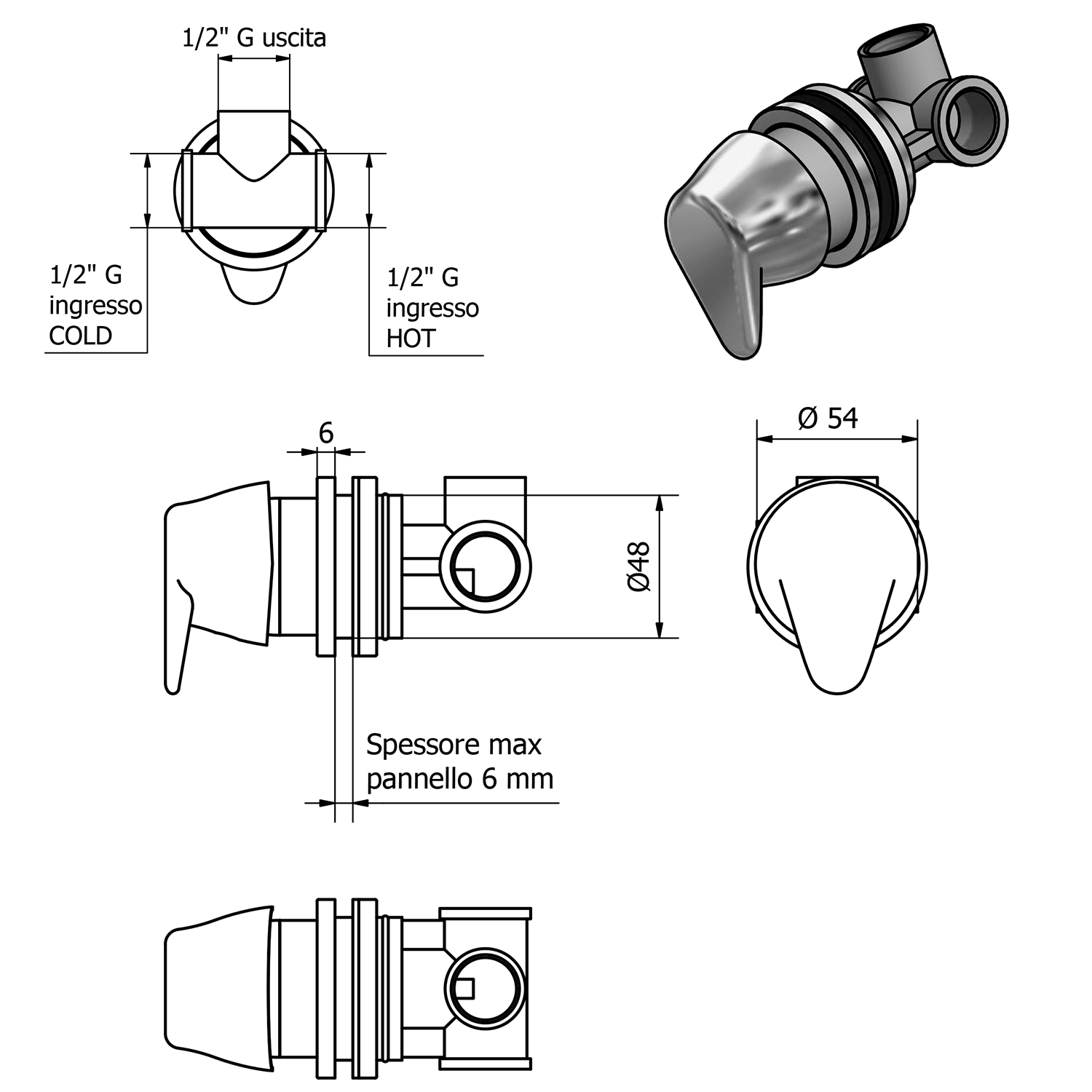 Sprchová průchodka na okraj vany včetně hadice  F1/2