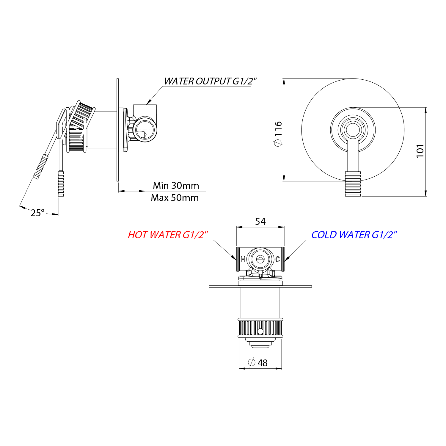 Držák sprchy kulatý, pevný, s vyústěním, chrom SG203