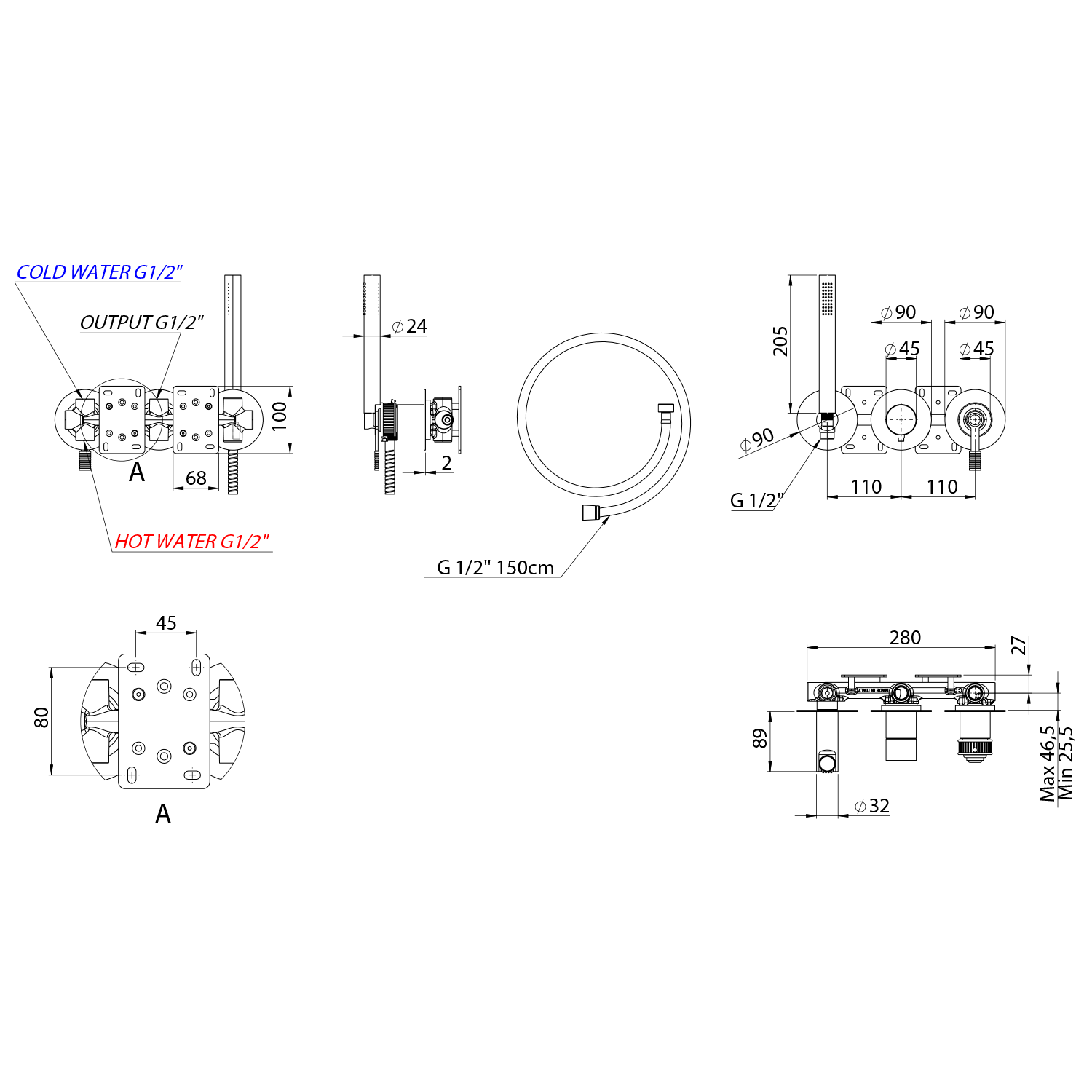 Sprchové ramínko kulaté, 350mm, bronz BR356
